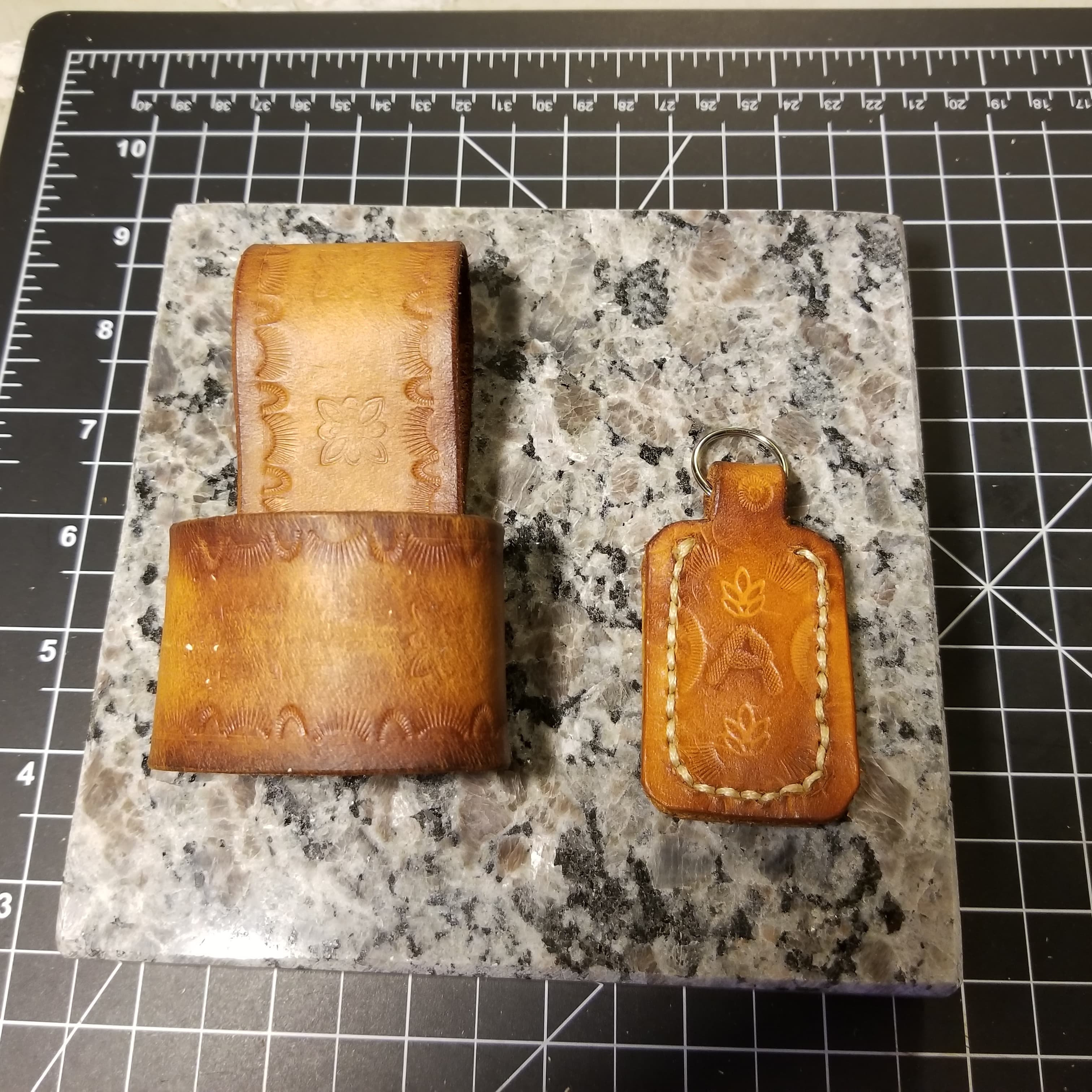 So, i’m starting to have more and more projects under my belt. Since I’ve started leather crafting I’ve completed a bracelet, cuffs, a small key chain, and a belt. However with that, I also have bracers, and a (hatchet) holster nearly complete as well. I’m pretty darn happy with the progress I’ve made in such short time. I’m going to do a quick summary of all of those projects I’ve worked on since starting.